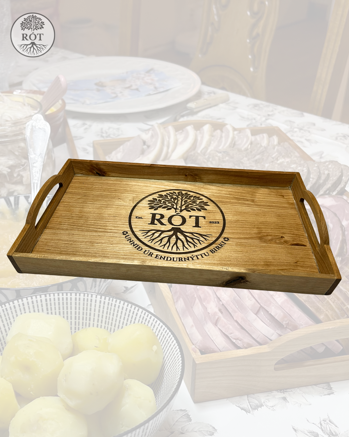 RÓT vörumerkið táknar sjálfbærni og endurvinnslu viðar. Við framleiðum meðal annars handunnin skurðarbretti, bakka og aðrar viðarvörur úr endurnýttu evrópsku birki.