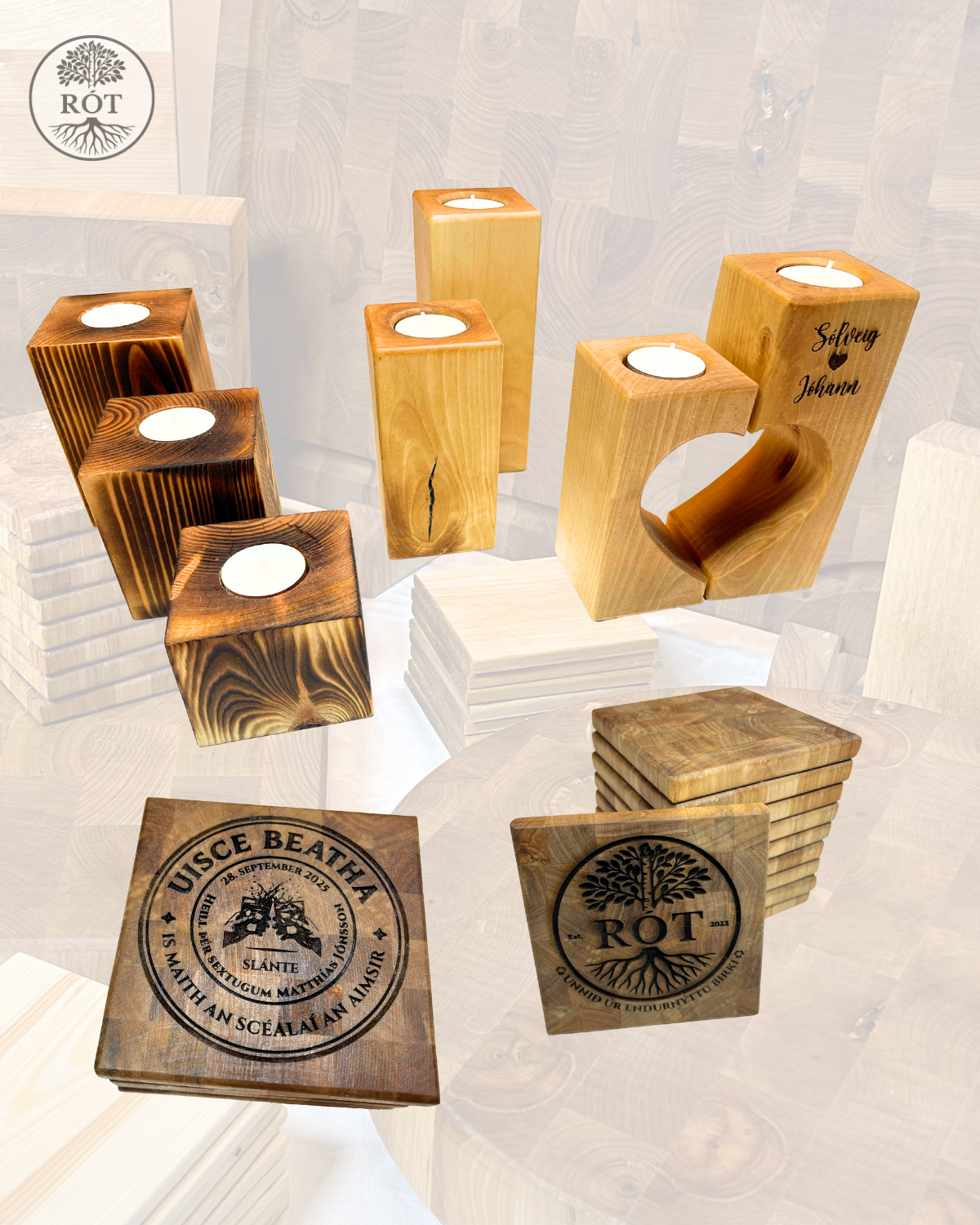 RÓT byggir á virðingu fyrir efninu og náttúrunni. Við endurnýtum birki og annan við sem annars hefði farið til spillis og gefum honum nýtt líf í handsmíðuðum vörum með sögu, gæði og sjálfbærni að leiðarljósi.