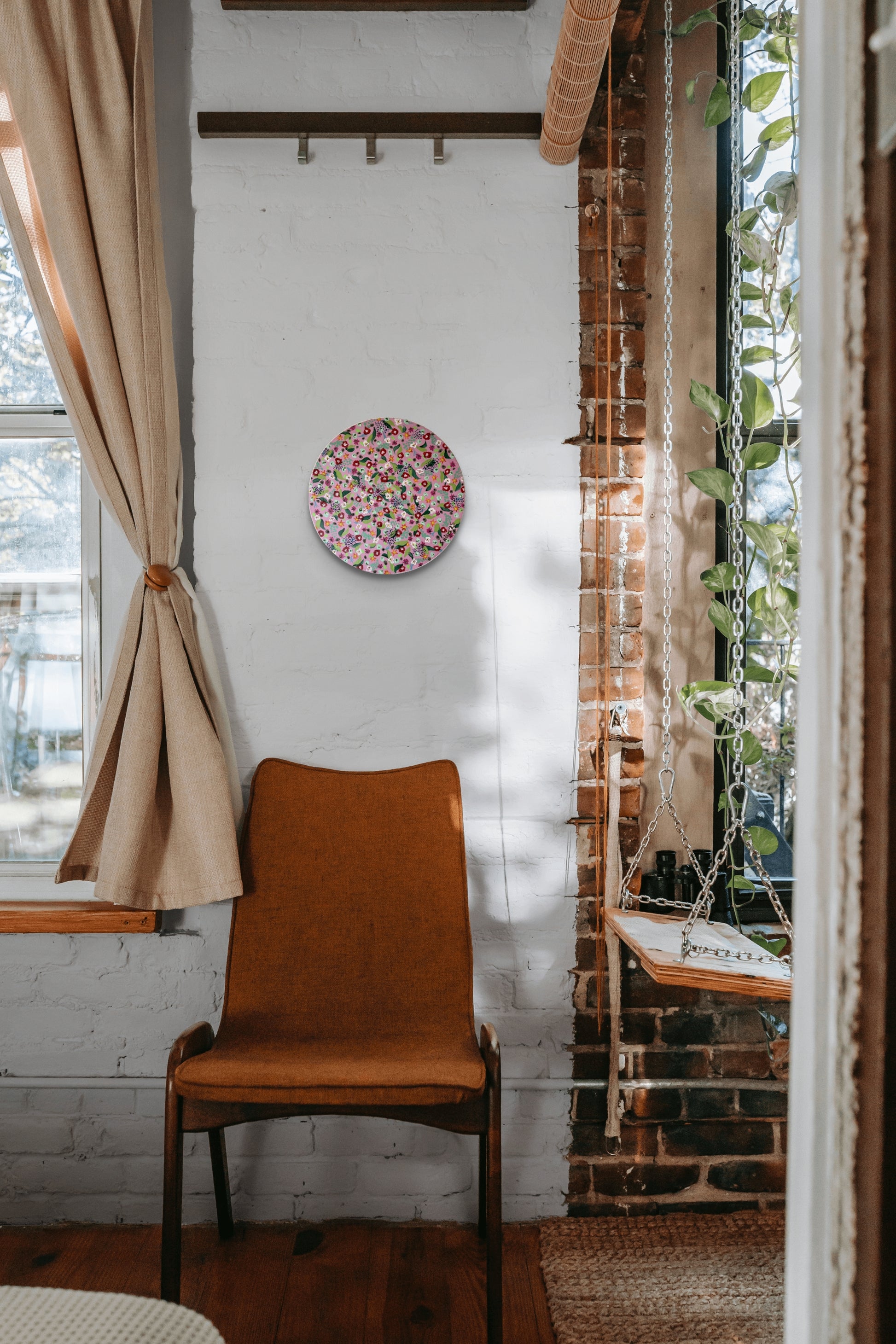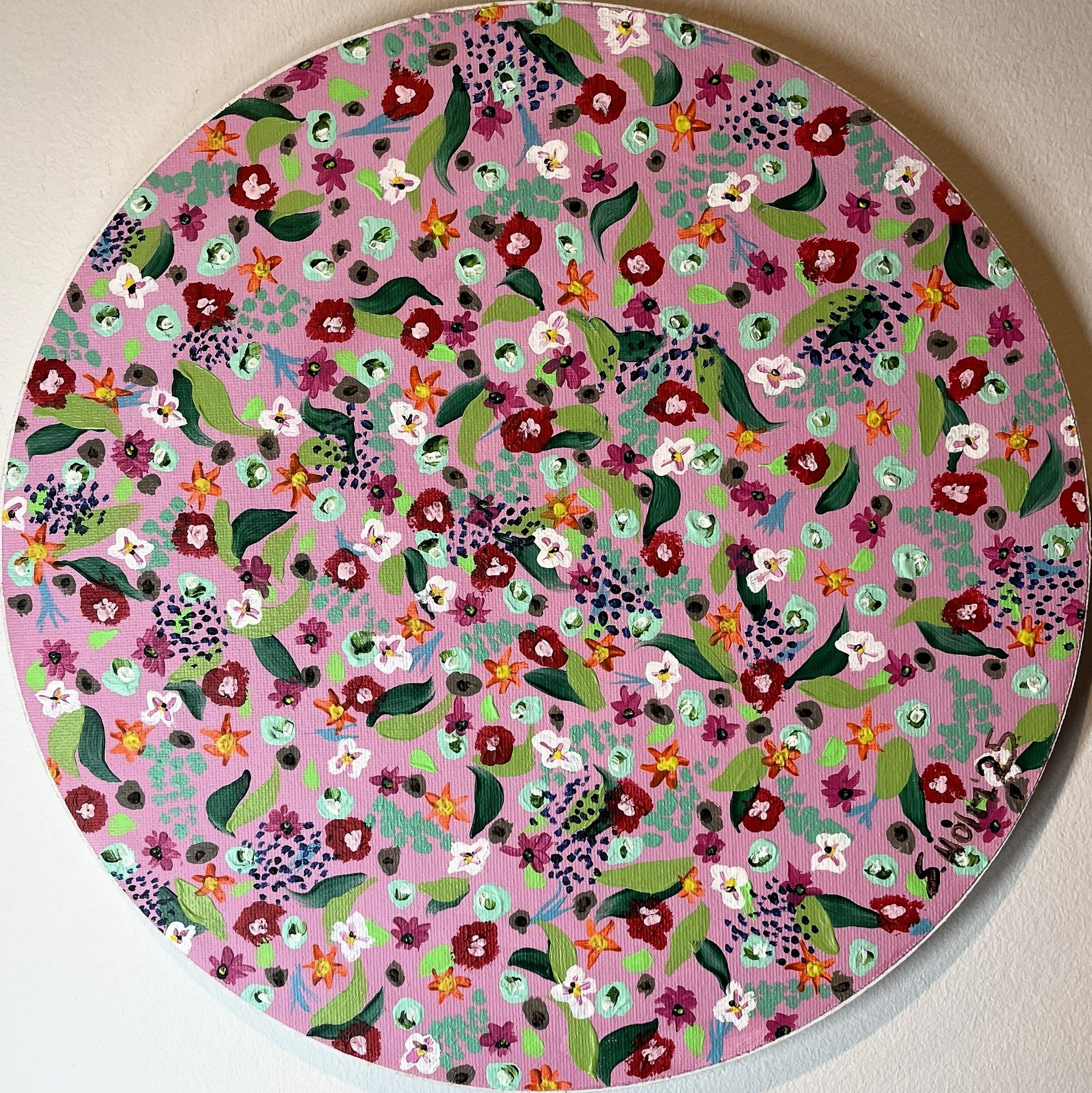 Blómadúlla 2 - Bleika - 2025, akrýl á flötum striga 30 sm. í þvermál
