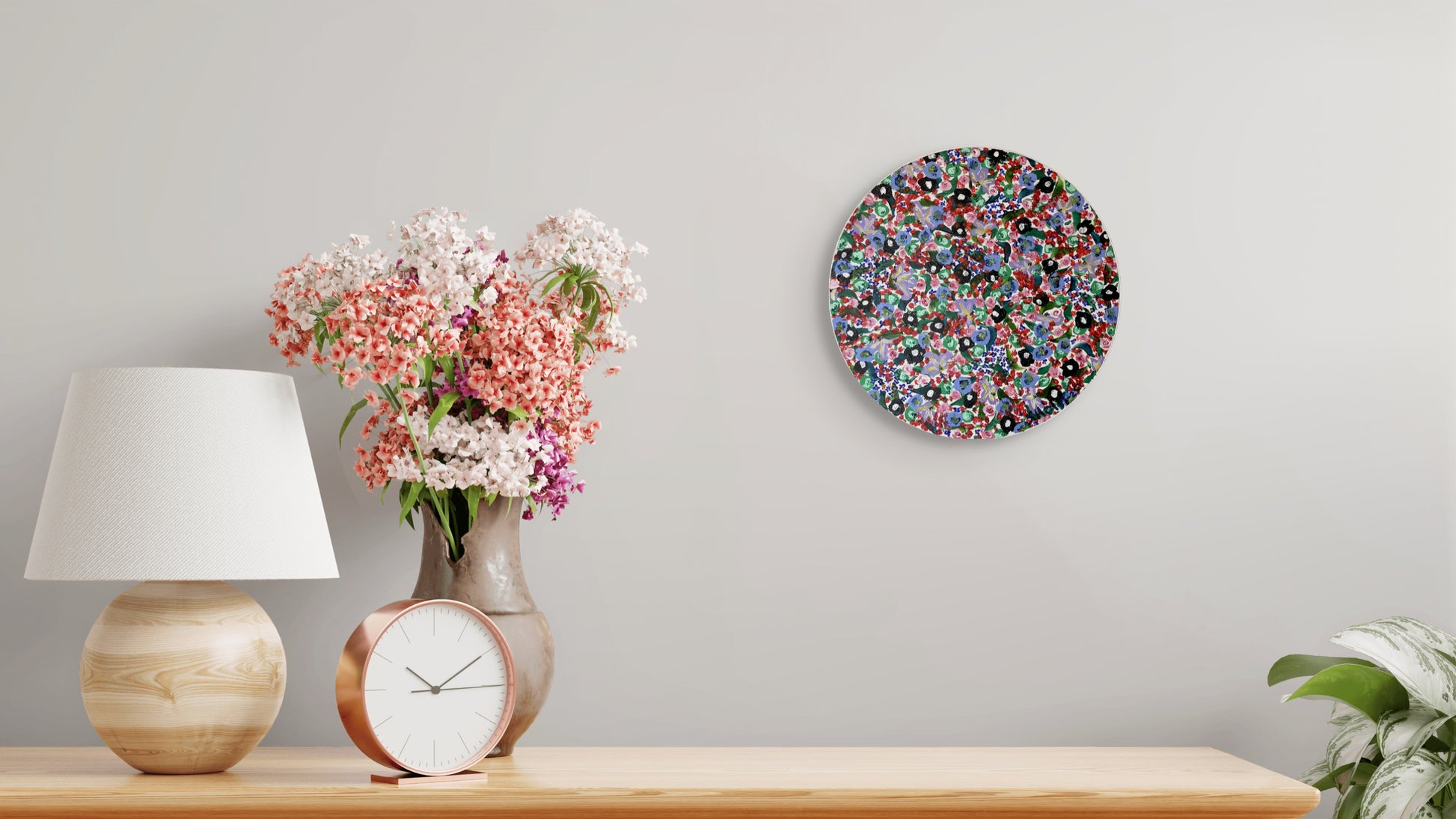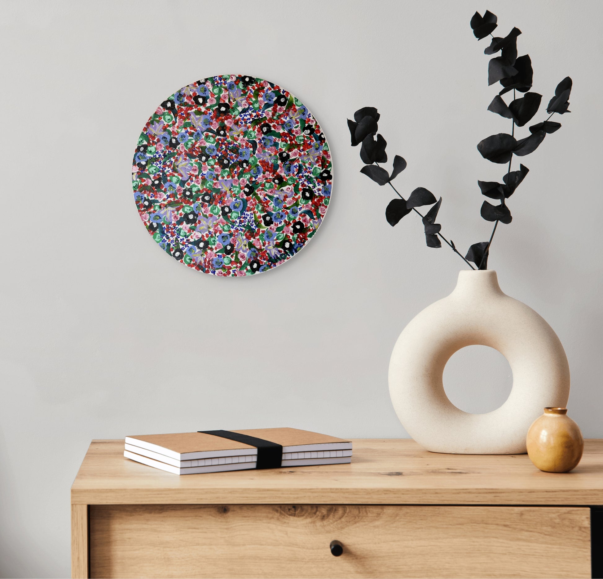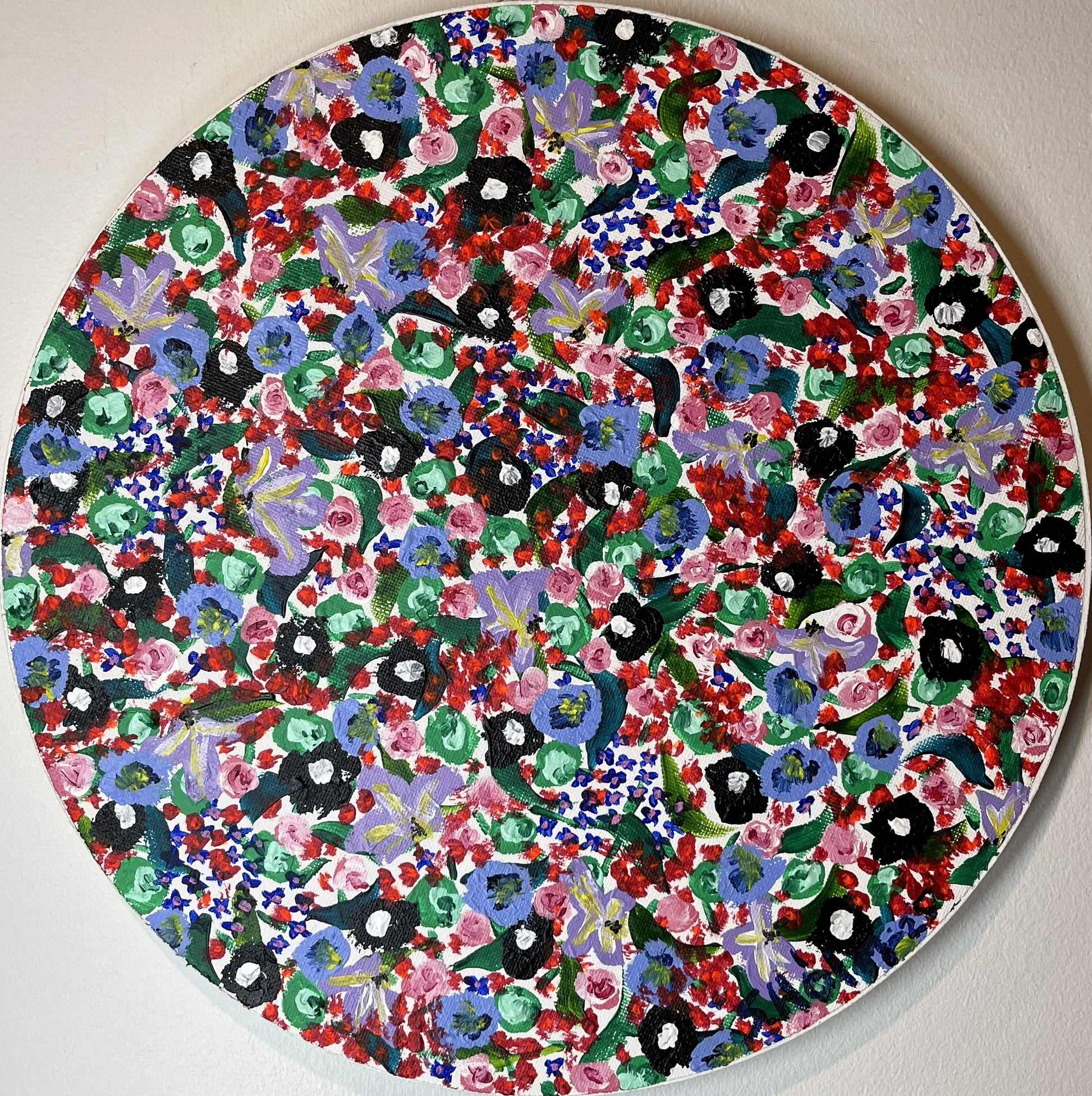Blómadúlla 3 - Rauða - 2025, akrýl á flötum striga 30 sm. í þvermál