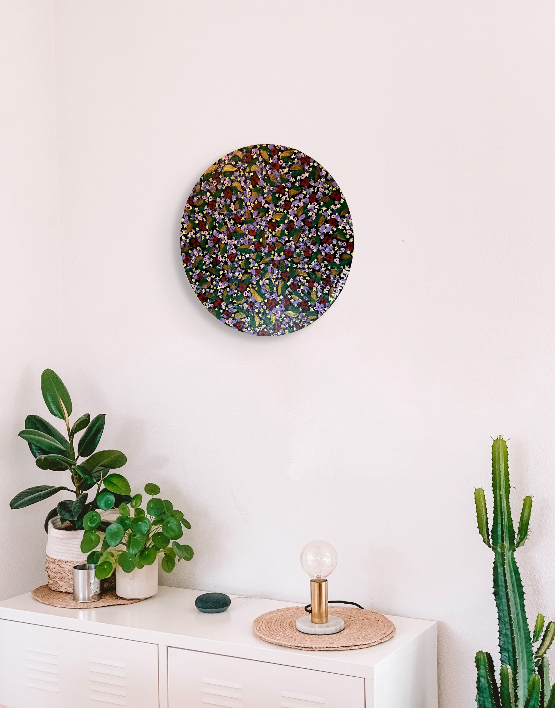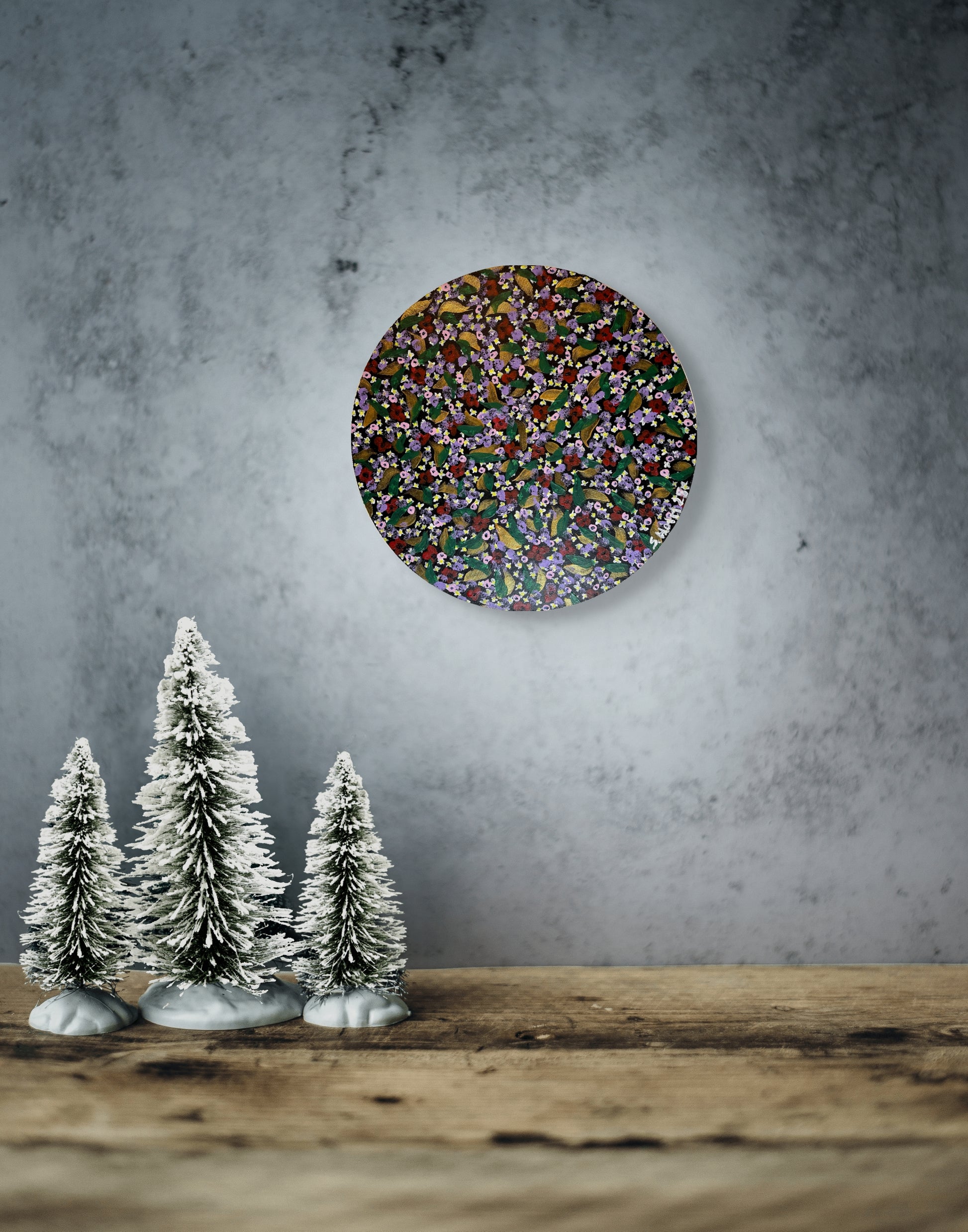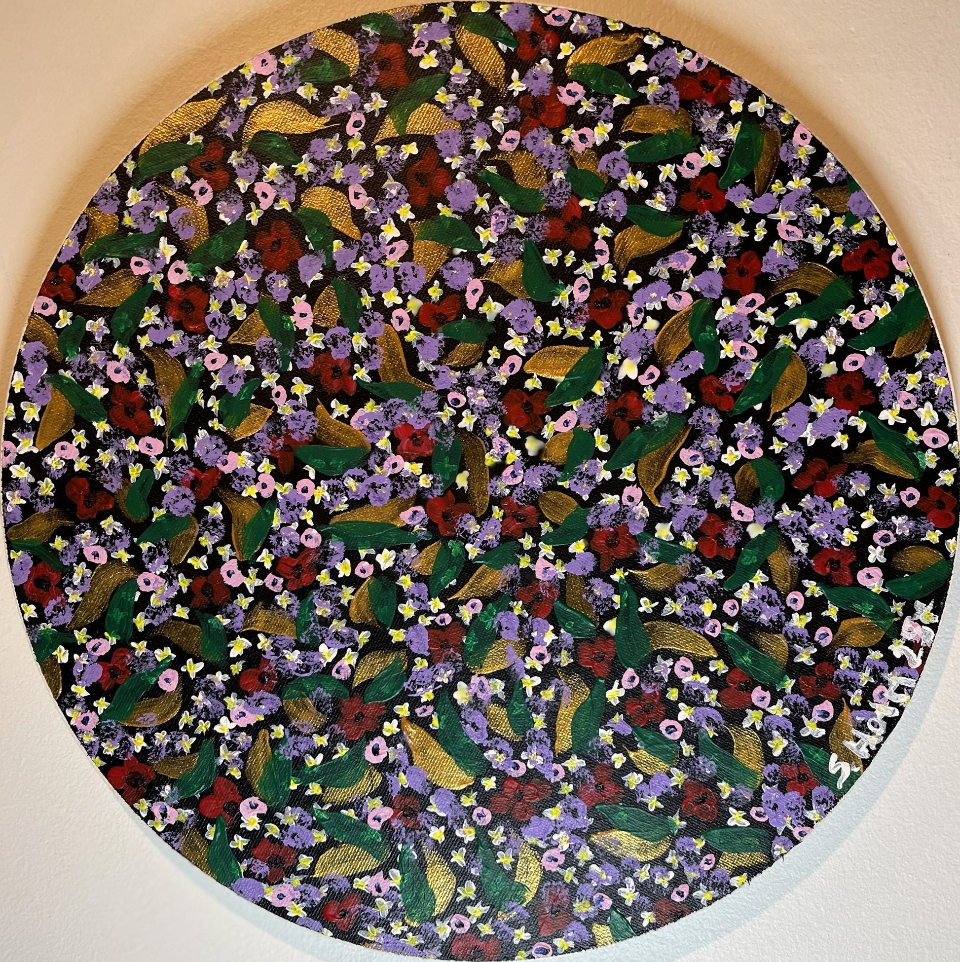 Blómadúlla 4 - Fjólubláa - 2025, akrýl á flötum striga 30 sm. í þvermál
