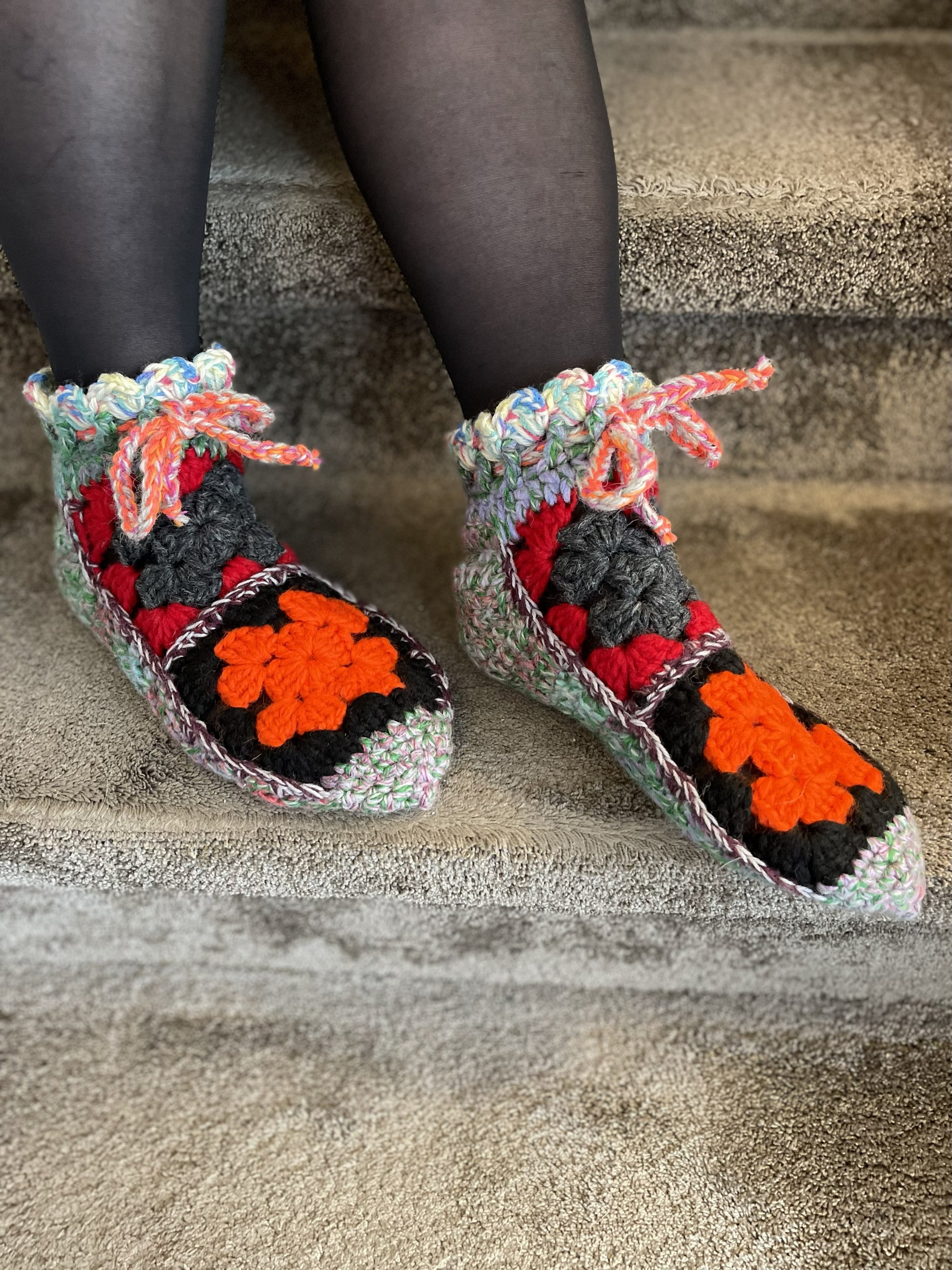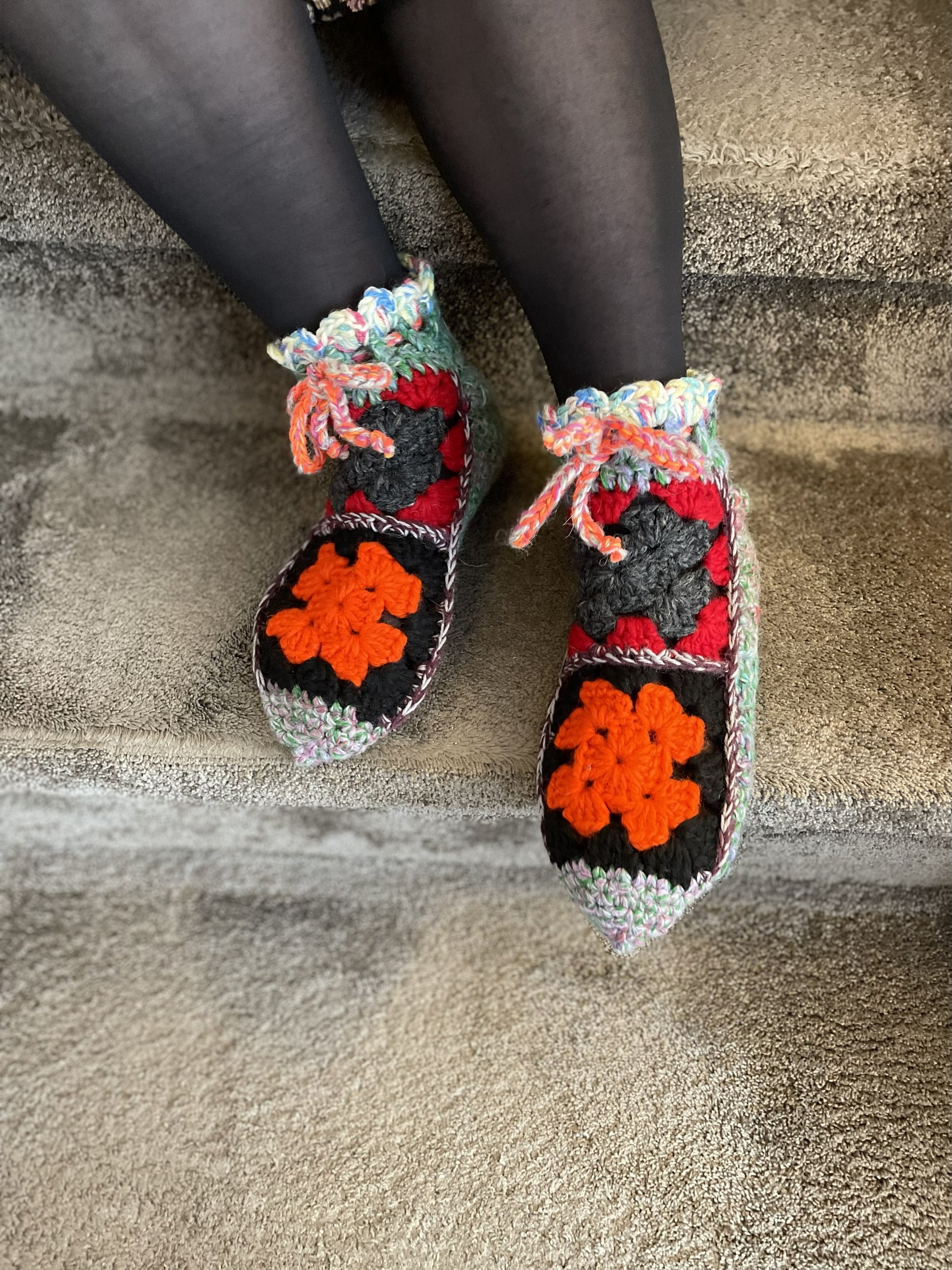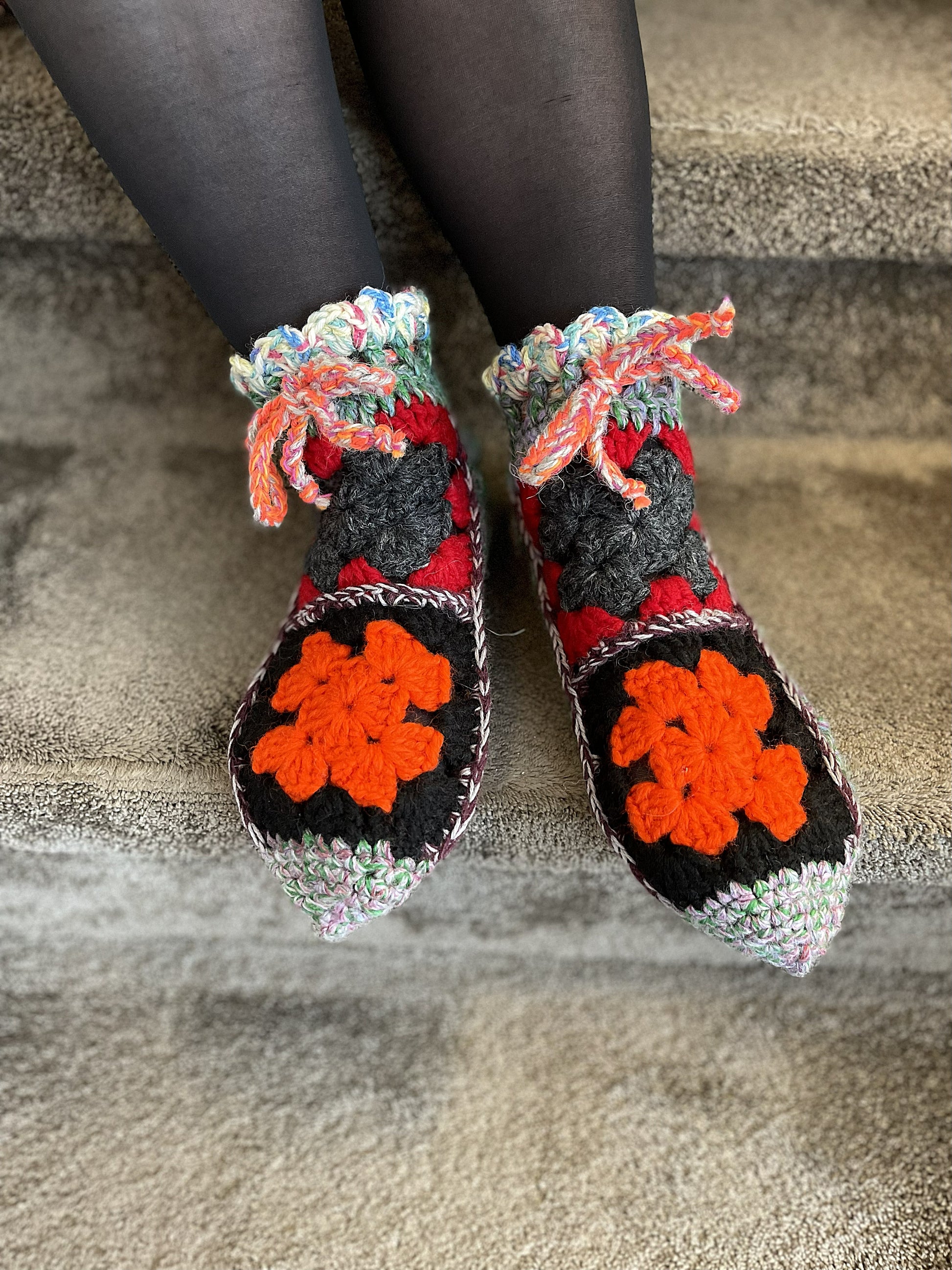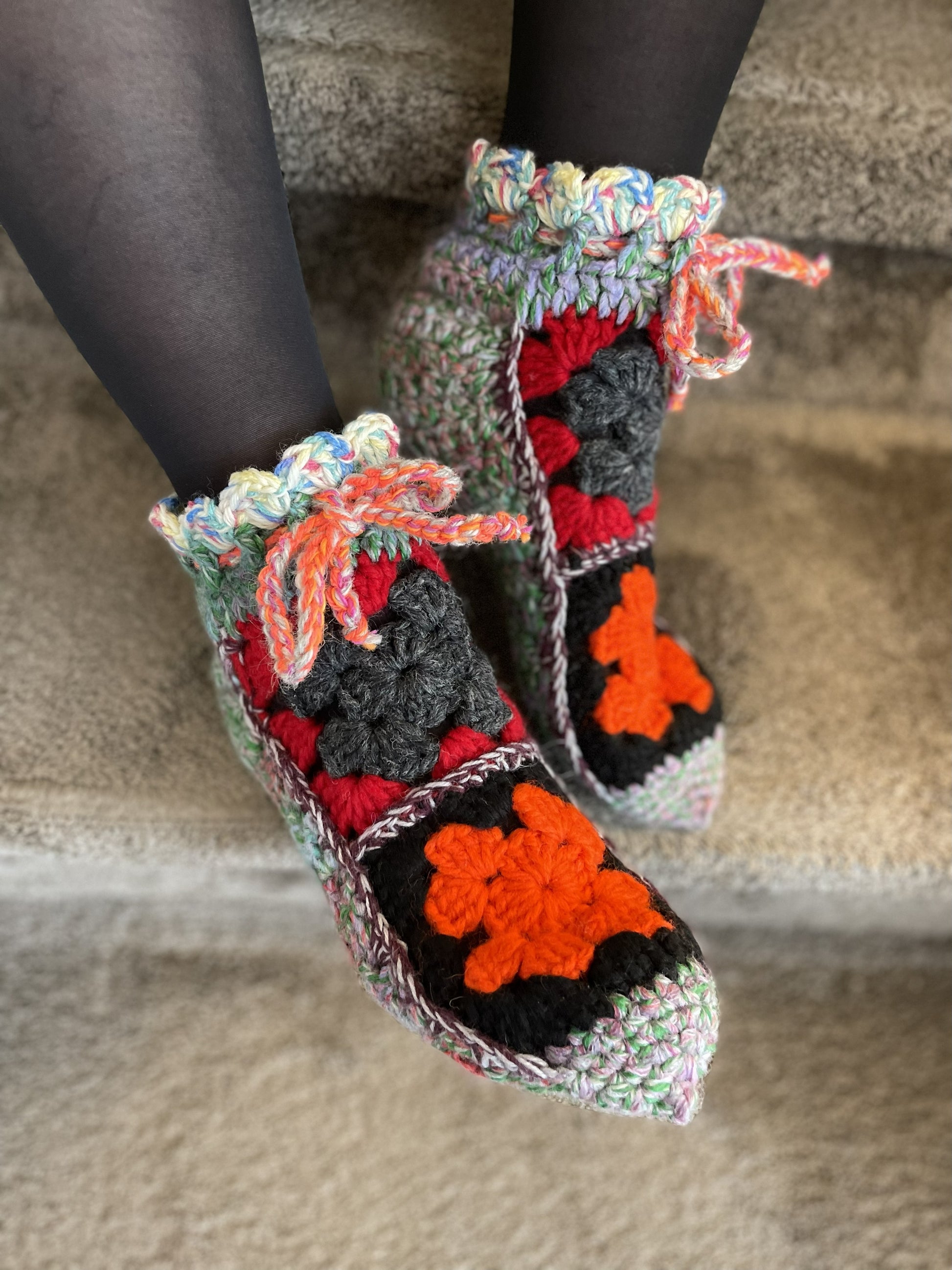 Litríkir og fallegir Dúllusokkar 2 eru heklaðir og dregnir saman ofan við hæl með bandi og byggir hönnun þeirra á fallegu ömmu-dúllunum góðu. Þessir sokkar eru nauðsynlegir ef það á að hafa það kósý heima fyrir á köldum vetrar kvöldum og ekki skemmir það fyrir hvílík fegurð hér um ræðir því að eitt er víst að við þurfum fleiri liti í lífið okkar, litir eru jákvæðir og gefa frá sér góða orku. Aukin jákvæð orka er einmitt það sem við þurfum og þá sérstaklega þegar veturinn gengur í garð. Niðurstaðan er fleiri liti og meiri jákvæðni og lífið leikur við okkur. Dásemdar Dúllusokkar 2 eru ómissandi.