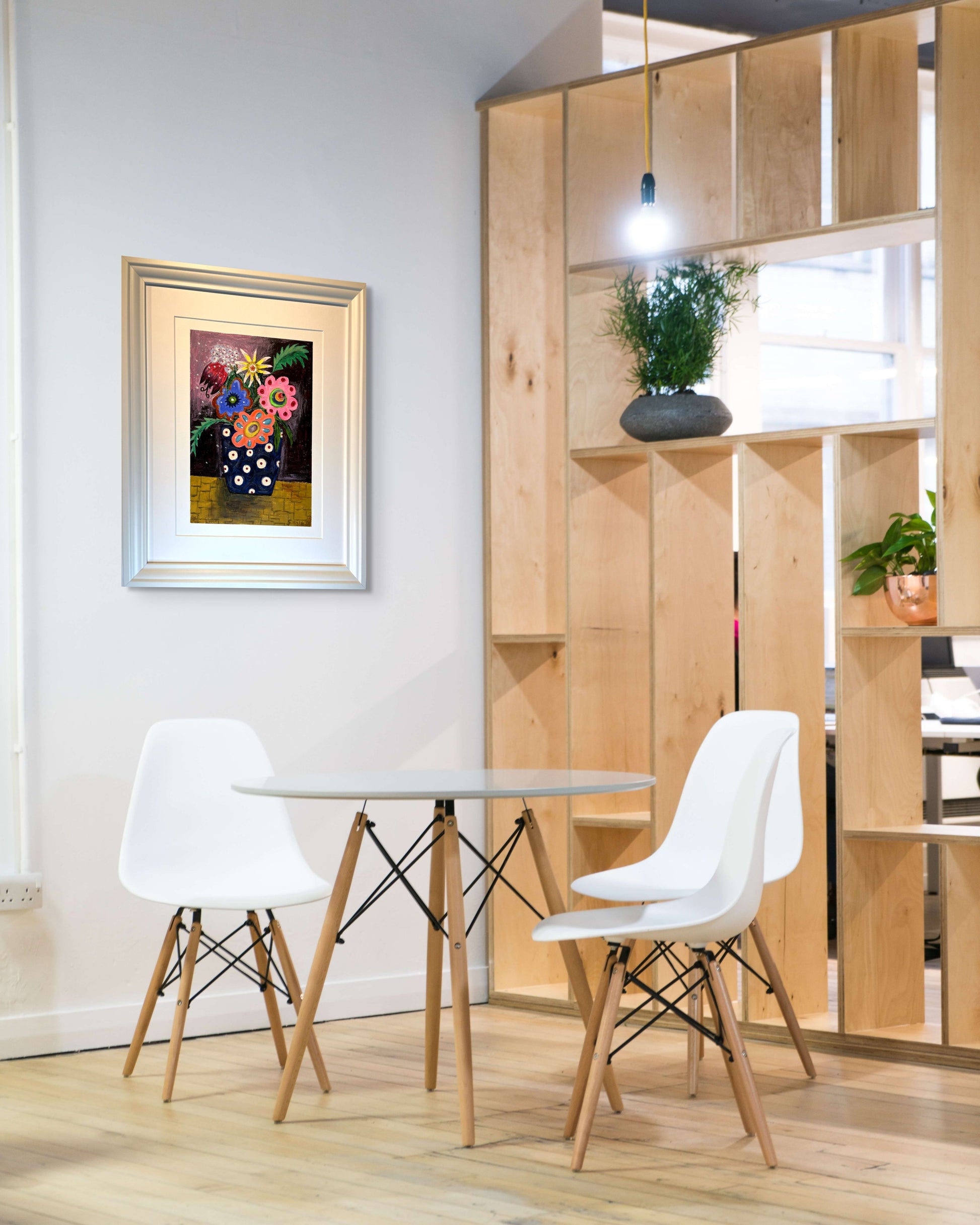 Selst í tilbúnum hvítum ramma sem er 47 x 57 sm. En auðvelt er að skipta um ramma á verkinu.