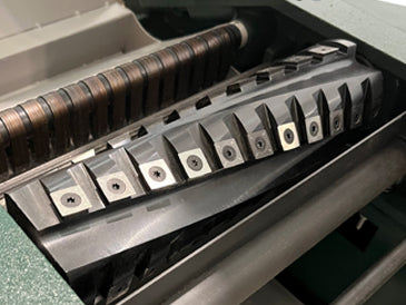 Spírallaga hnífakeflið myndar lítlar og jafnar spónaflögur, sem gerir útsog enn árangursríkara og eykur skilvirkni. TCT-hnífarnir endast 10–20 sinnum lengur en hefðbundnir HSS-hnífar og hver skurðhaus hefur fjórar hliðar. Þegar dregur úr biti, er tönninni einfaldlega snúið 90° til að fá nýja og ferska egg. Miðað við hefðbundna 3-hnífa vél er hnífaskipti og stilling einföld þar sem hver skurðhaus/hnífur er fastur í sínu sæti þannig að ekki er þörf á fínstillinu.