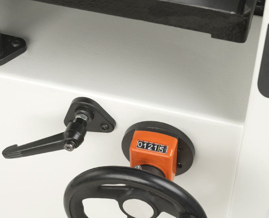 Eitt af lykileinkennum PT310-HB er samsíða lyftikerfi borðanna. Skiptingin úr afréttara yfir í þykktarhefil er hröð og einföld – losaðu einfaldlega cam-læsingarnar og lyftu öllu borðinu ásamt aðhaldinu í einni hreyfingu.
