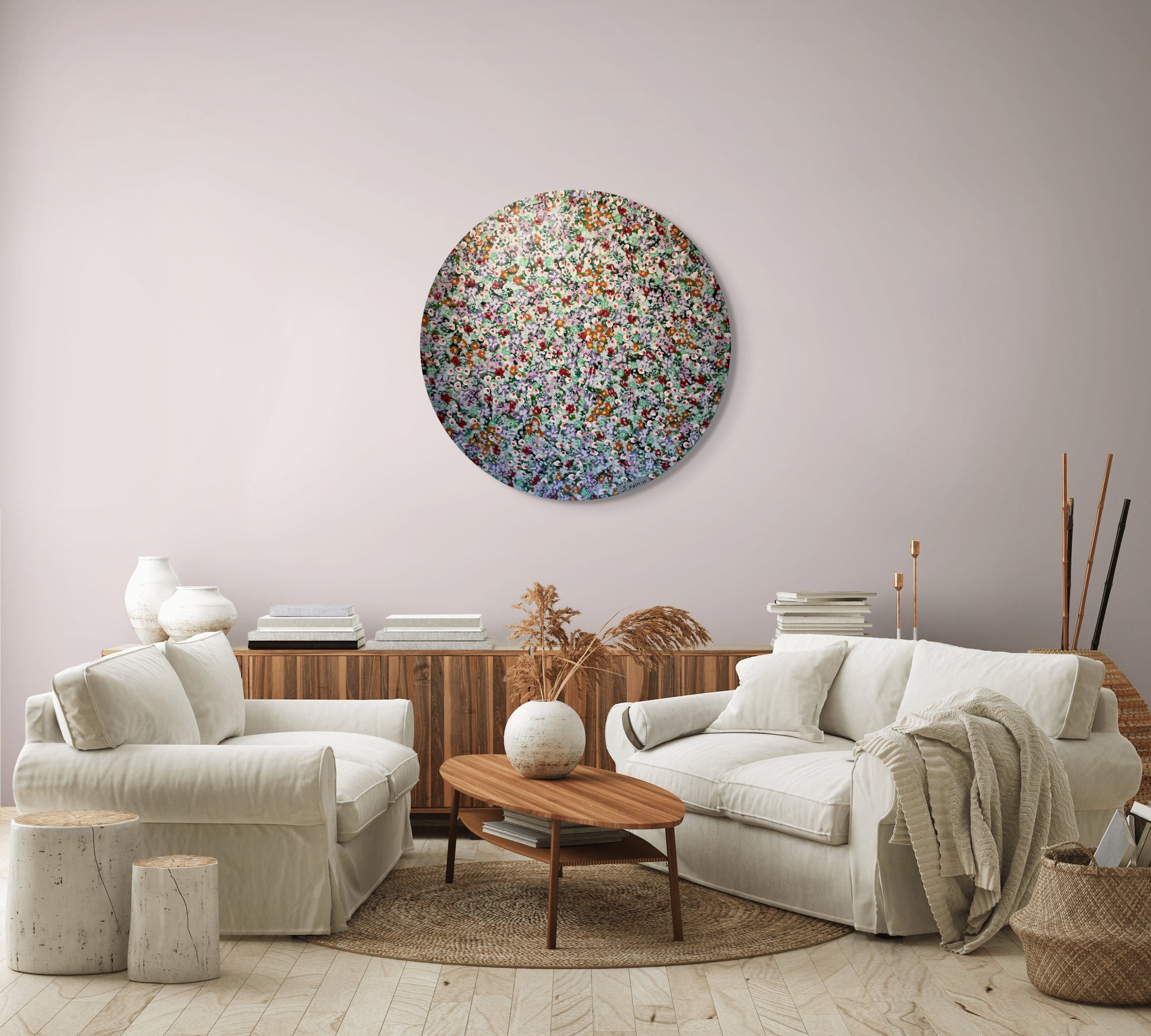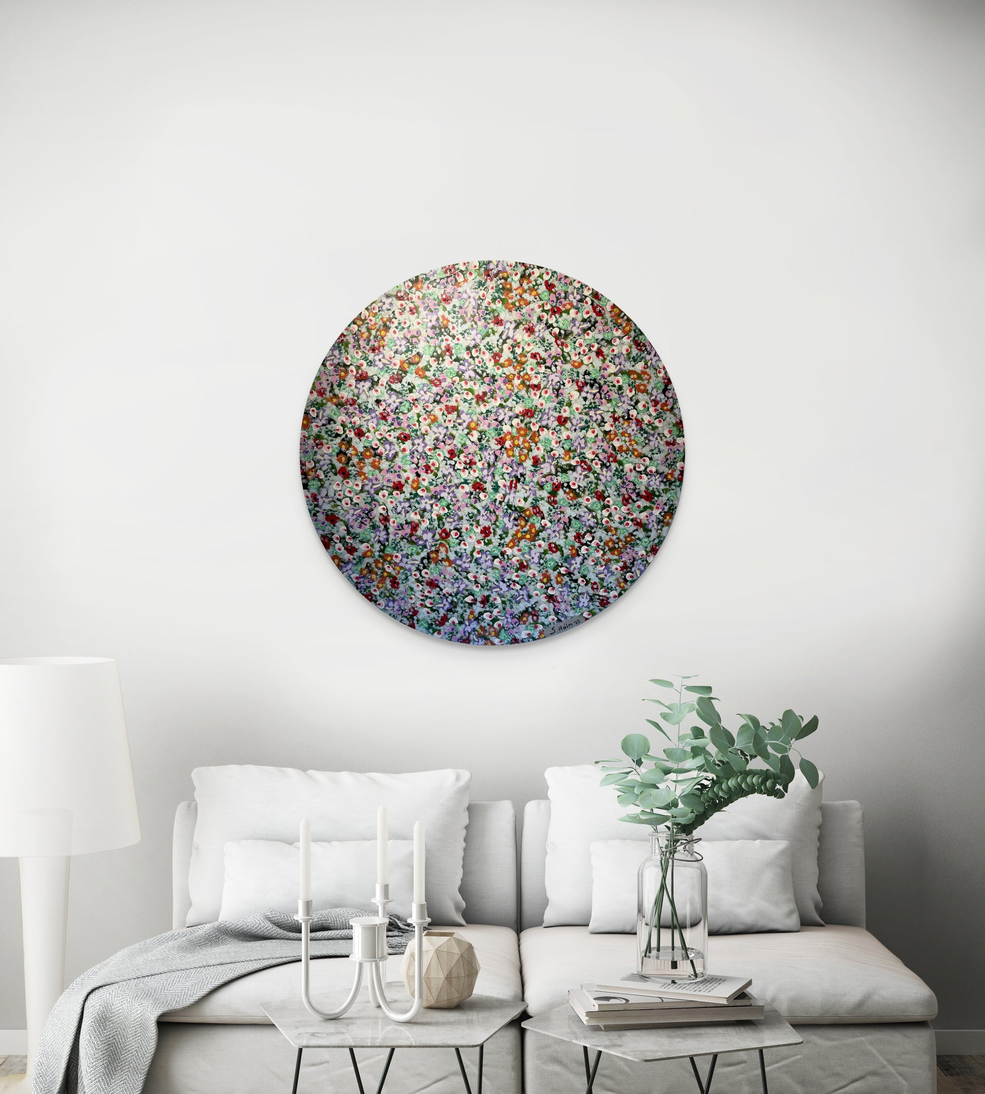 Blómahaf - 2025, akrýl á striga. 90 sm í þvermál.