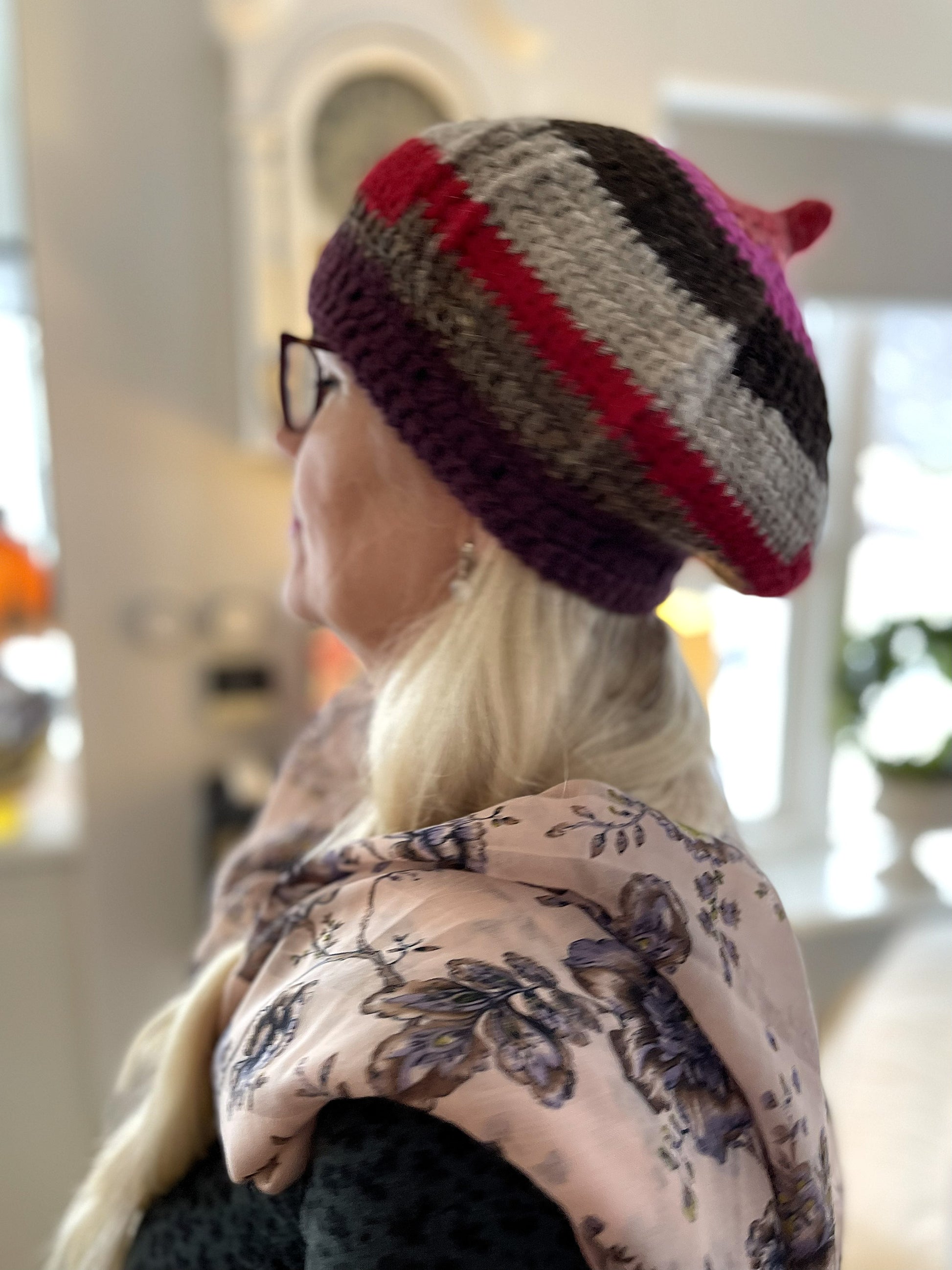 Efni: Garnið er lopi sem vissulega er ekki allra en þess utan er Lopahúfa mjög hlý og góð og fer vel á höfði.