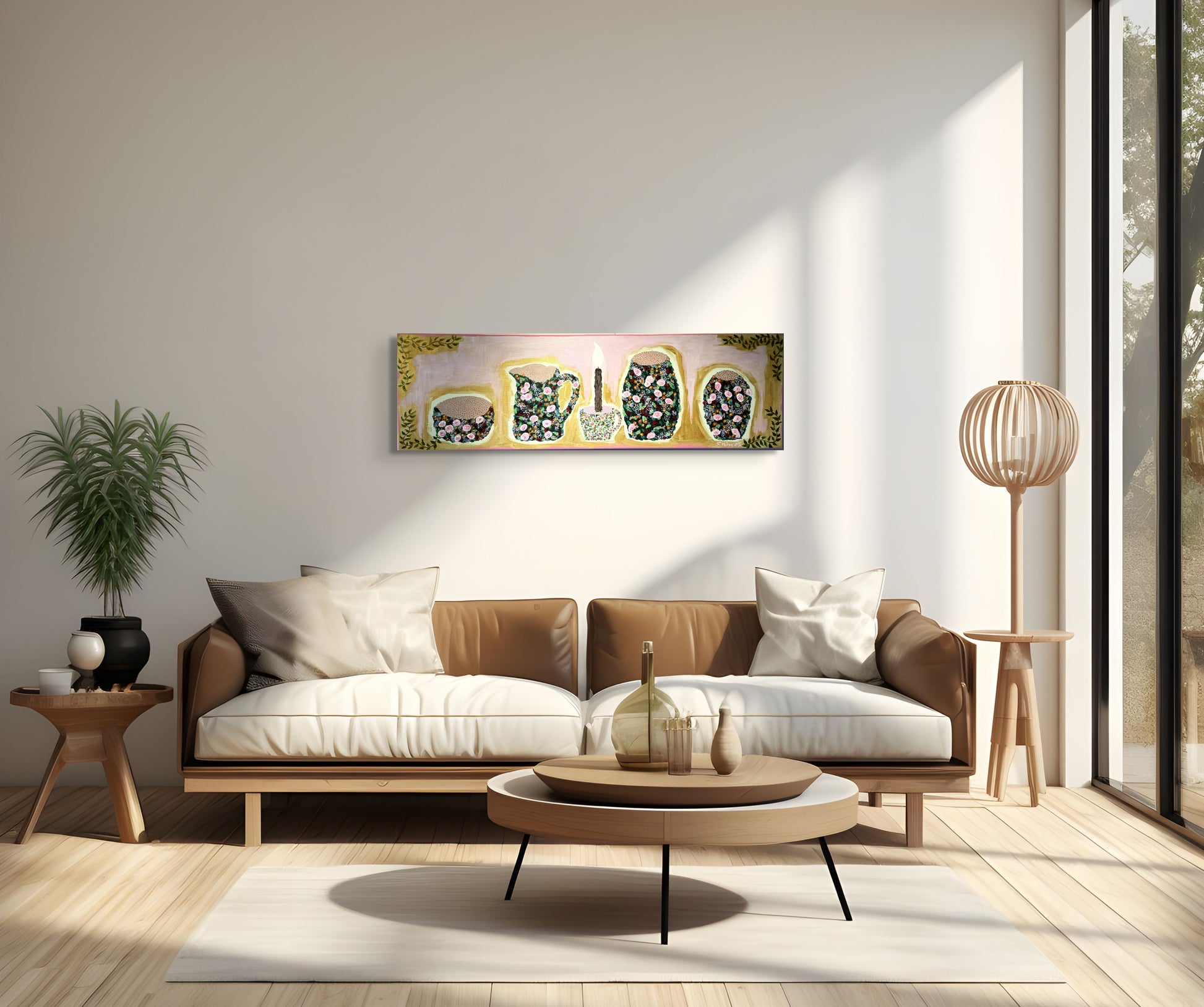 Stofublóm - 2025, akrýl á striga 100x30 sm.